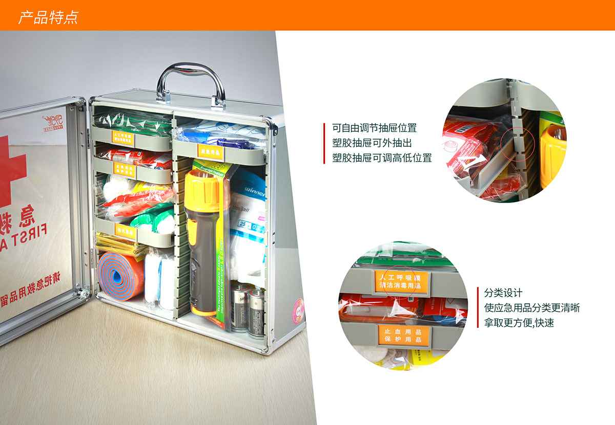 昆明逸辉新能源汽车服务有限公司综合急救箱,独特的箱体设计,适用于劳保、厂矿、公共场所、办公室、车间、学校、社区、健身房、实验室、建筑工地等人员密集的场所及防灾减灾等领域。