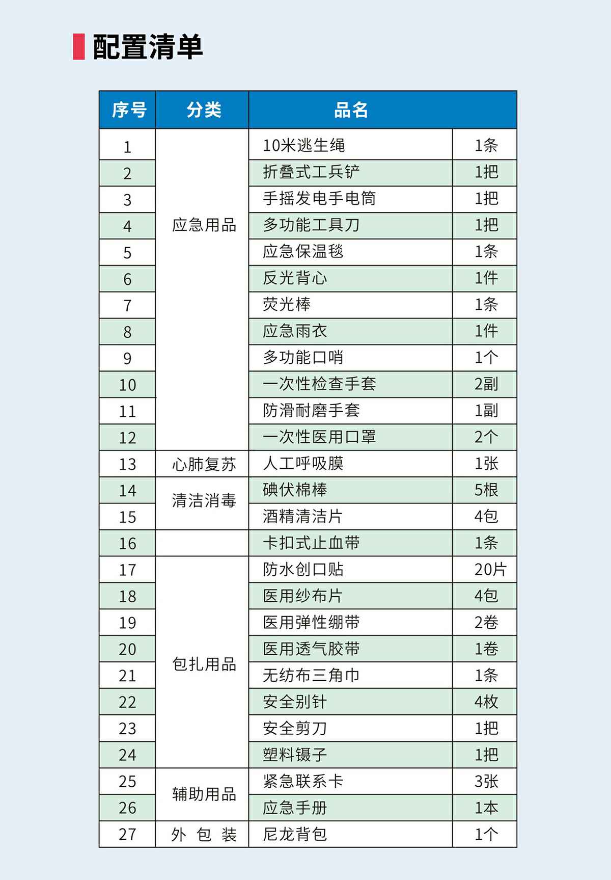 昆明逸辉新能源汽车服务有限公司防灾应急包,适合突发灾害事故时恶劣环境下使用,配置全面、科学,满足从日常保健到灾难自救逃生的全面需求。
